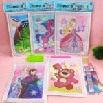 Fun and easy diamond painting kit for beginners, featuring simple cartoon designs and vibrant, sparkling crystals with a stunning 5D effect.